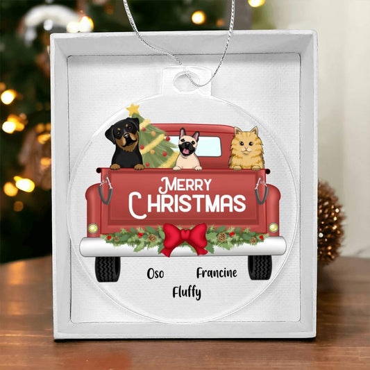 Pet Personalized Christmas Truck Acrylic Keepsake Ornament