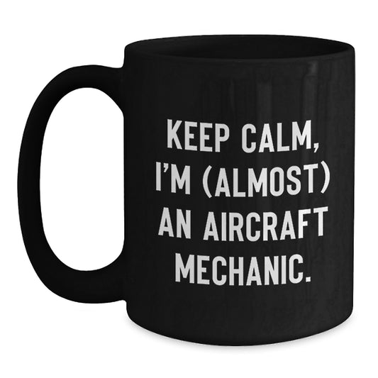 Funny Gifts for Aircraft Mechanic Friends, Unique White Coffee Mug, Keep Calm I'm (almost) An Aircraft Mechanic Christmas Unique Gifts