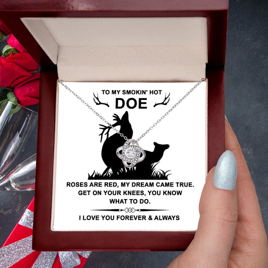 To My Smokin' Hot Doe” Message Card with Love Knot Necklace – Romantic and Playful Valentine's Day Gift