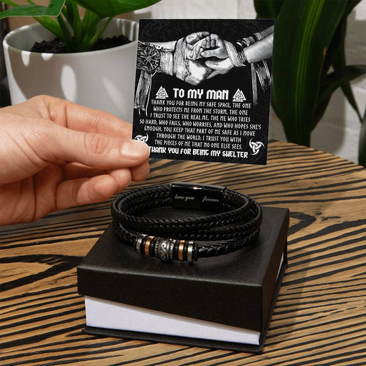 To My Man – Engraved Vegan Leather Bracelet with Sentimental Message Card – Stainless Steel Magnetic Clasp, Perfect Valentine's Day Gift for Him