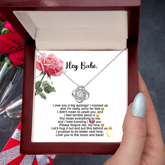 Hey Babe – I’m Sorry Love Knot Necklace | Heartfelt Apology Gift for Partner with Message Card