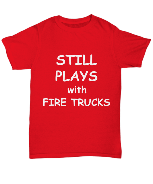 Firefighter Funny Tee Shirt - Still Plays with Fire Trucks