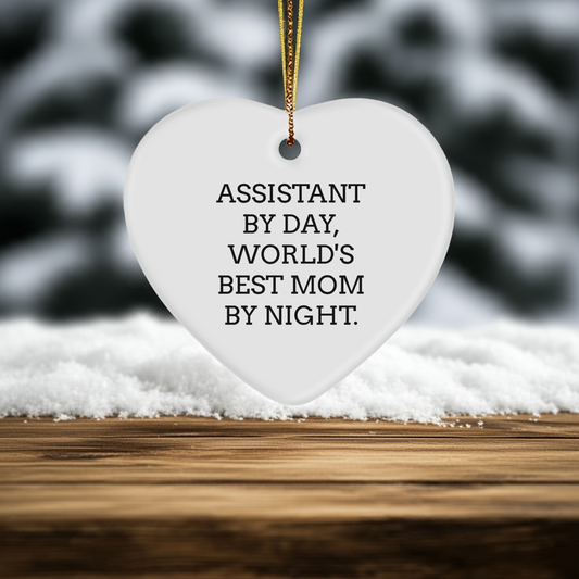 Assistant By Day, World's Best Mom By Night. Heart Ornament Gifts from Mom to Assistant on Christmas