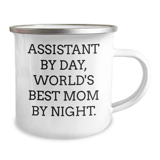 Funny Assistant Gifts from Family - Black Coffee Mug for Graduation - 'Assistant By Day, World's Best Mom By Night.'