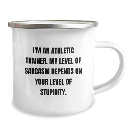 Funny Gifts from Athletic Trainers, Christmas Unique Gifts for Men, Women, Friends, Coworkers, Family - I'm An Athletic Trainer. My Level Of Sarcasm Depends On Your Level Of Stupidity. Camping Mug