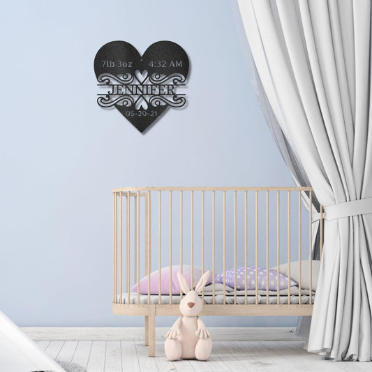 Newborn Baby Love Monogram Personalized Indoor Outdoor Steel Wall Sign Art