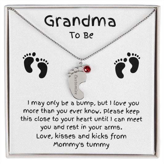 Grandma To Be Custom Engraved Baby Feet Birthstone Necklace