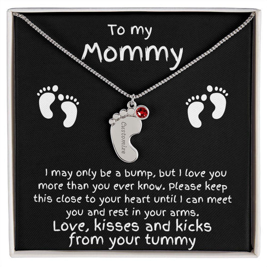 Expectant Mom Gift from the Bump Engraved Baby Feet Birthstone Charm Necklace