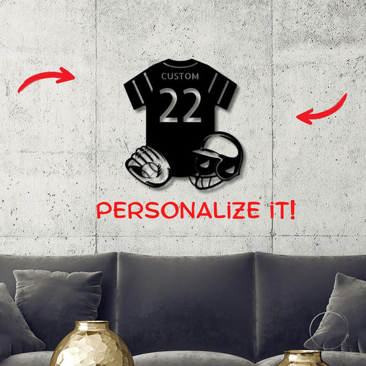 Baseball Gear Custom Name and Jersey Number Metal Wall Sign