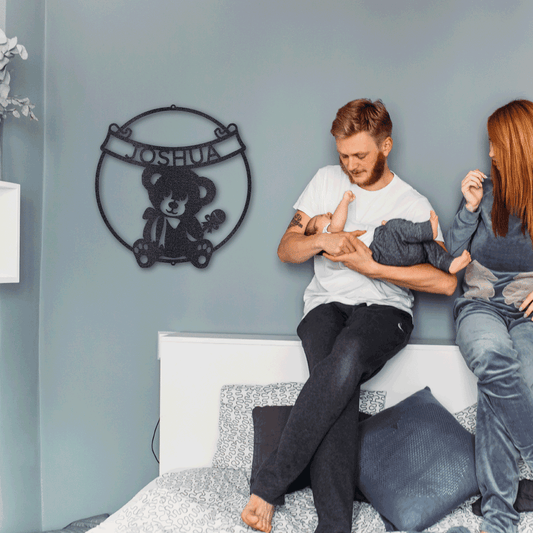 Cherished Teddy Bear: Personalized Metal Name Sign for Children