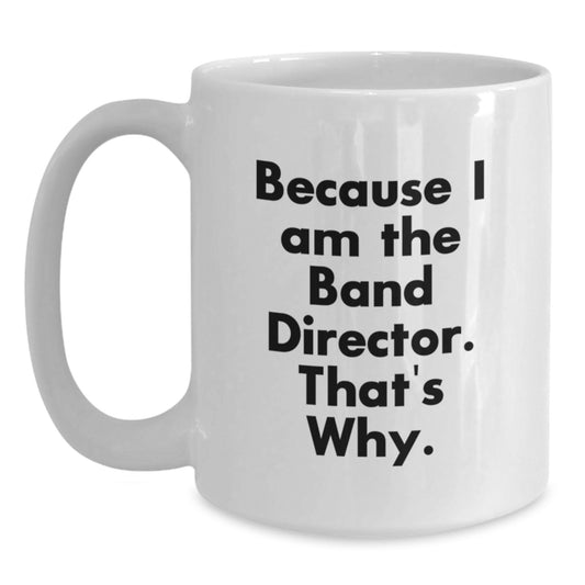 Funny Band Director Gifts from Friends, White Coffee Mug Because I Am The Band Director That's Why, Christmas Unique Presents for Men