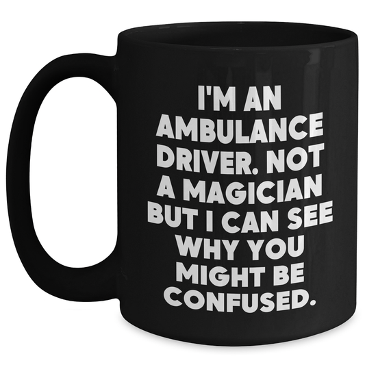 Funny Ambulance Driver Gifts, 'I'm Not A Magician' Quote Black Coffee Mug, Unique Father's Day Unique Gifts from Men to Ambulance Drivers
