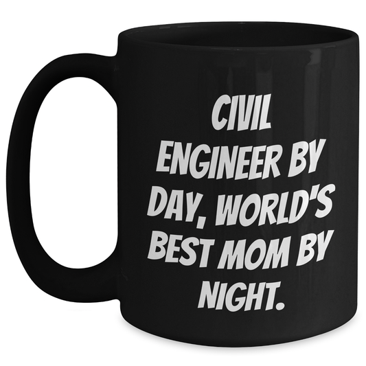 Civil Engineer Gifts from Mom - Funny Black Coffee Mug for Graduation, 'Civil Engineer By Day, World's Best Mom By Night.'