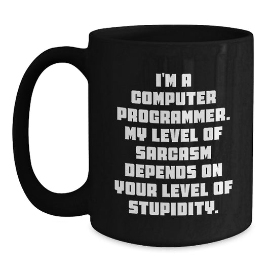 Funny Computer Programmer Mug Gifts for Men, Black Coffee Mug, 'I'm A Computer Programmer My Level Of Sarcasm Depends On Your Level Of Stupidity', Christmas Unique Gifts from Friends