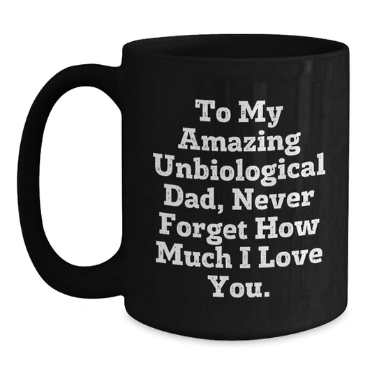 Funny Unbiological Dad Gifts, Unique Christmas Unique Gifts for Unbiological Dad, Black Coffee Mug with 'To My Amazing Unbiological Dad, Never Forget How Much I Love You.' Quote