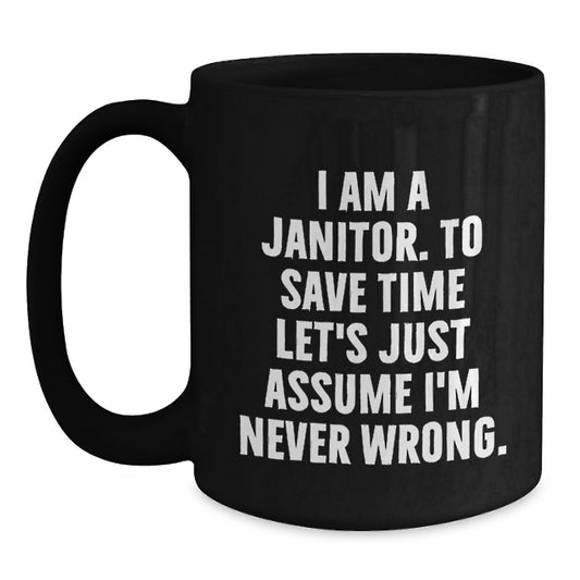 Funny Janitor Gifts from Friends, Unique Black Coffee Mug for Men, I Am A Janitor. To Save Time Let's Just Assume I'm Never Wrong. Humor