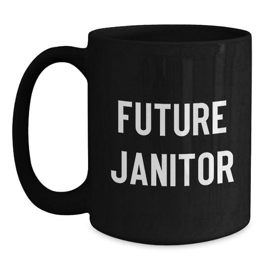 Funny Janitor Gifts from Friends and Family, Inspirational Future Janitor Black Coffee Mug, Christmas Unique Ideas