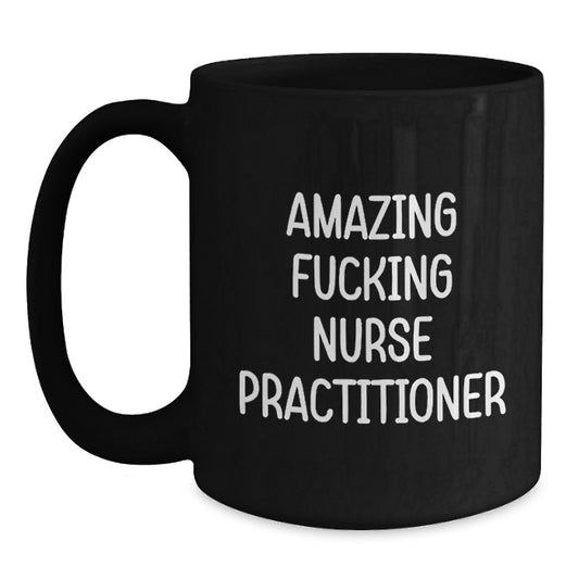 Funny Nurse Practitioner Gifts for Women, Black Coffee Mugs from Friends, Inspirational Quote, Amazing F--king Nurse Practitioner Christmas Unique Gifts