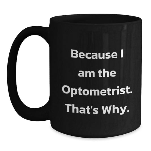 Funny Optometrist Mug Gifts from Friends or Family, Perfect for Christmas Unique Gifts, Because I Am The Optometrist. That's Why. Black Coffee Mug for Optometrist, Optometrist Humor