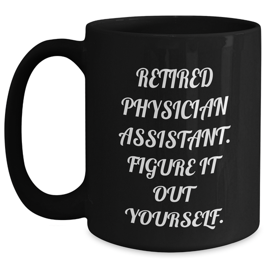 Funny Physician Assistant Gifts from Friends to Physician Assistant Grads, Black Coffee Mug - 'Retired Physician Assistant. Figure It Out Yourself.'
