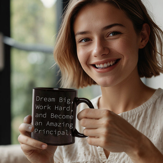 Funny Principal Gifts from Friends - Black Coffee Mug for Birthday with Inspirational Quote 'Dream Big, Work Hard, And Become An Amazing Principal.'