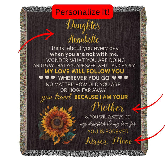 To My Bonus Daughter My Love Will Follow You Personalized Heirloom Woven Blanket