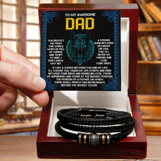 My Warrior Dad - Father's Day Gift for Dad - Men's Braided Vegan Leather Bracelet with Quiet Strength Warrior Message Card