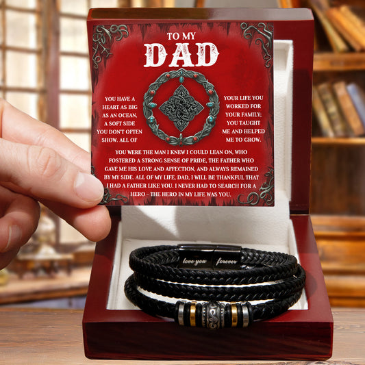 To My Dad Vegan Leather Bracelet Birthday, Father's Day Gift with Celtic-Inspired “Ocean Heart” Message Card