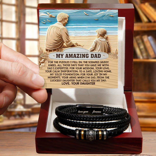 My Amazing Dad Braided Leather Bracelet from Daughter - Solid Foundation, Calm Inspiration, Loving Home, Heartfelt Father's Day Gift