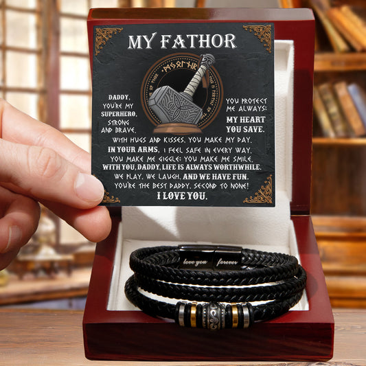My Father Superhero Viking Men's Vegan Leather Bracelet with Norse-Inspired Superhero Message Card - Unique Gift for Dad from Son or Daughter