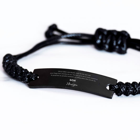 Black Rope Bracelet for Son Present, Son Always follow your dreams, never forget how amazing you are, Son Birthday Christmas Gifts Jewelry