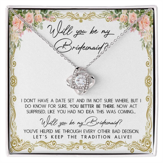 Bridesmaid Proposal Gift Keep The Tradition Alive Love Knot Pendant Necklace