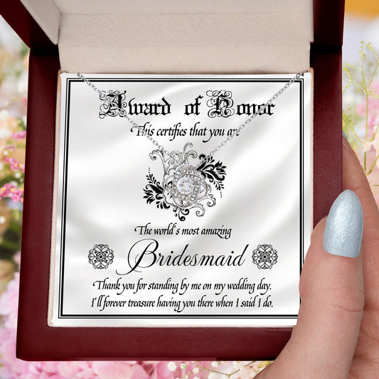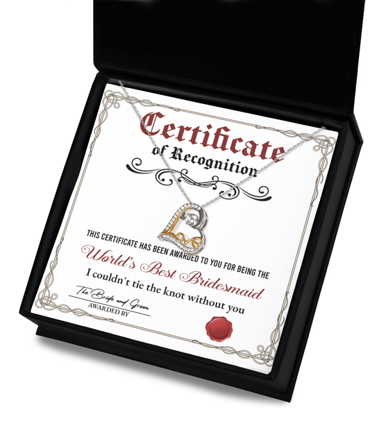 World's Best Bridesmaid Love Knot Necklace Gift with Certificate of Recognition – Heartfelt Thank You Jewelry from Bride & Groom