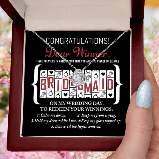 Bridesmaid Wedding Proposal Gift - The Winner Of Being My Bridesmaid - Love Knot Pendant Necklace