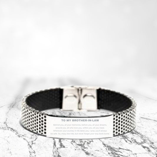 Inspirational Brother-in-law Stainless Steel Bracelet - Behind you, all your Memories, Before you, all your Dreams - Birthday, Christmas Holiday Gifts
