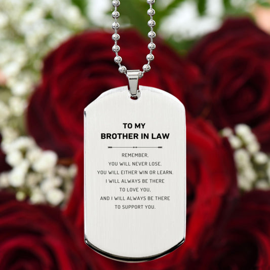 Brother-In-Law Engraved Silver Dog Tag Necklace Remember, you will never lose. You will either WIN or LEARN, Birthday Keepsake Christmas Gifts Ideas