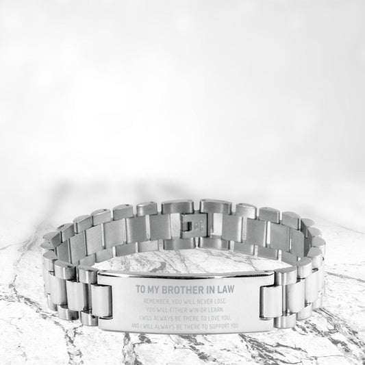 Brother-In-Law, Remember, you will never lose. You will either WIN or LEARN, Engraved, Ladder Stainless Steel Bracelet Birthday Christmas Gifts Ideas