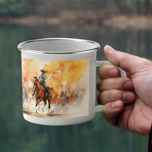 Texas Rodeo Cowboy Enamel Camping Mug – 12oz – Rustic Western Coffee Cup for Outdoor Adventures & Lone Star State Lovers