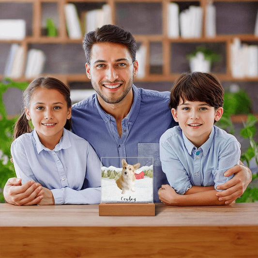 Pet Personalized Holiday Photo Upload Acrylic Plaque with Lighted LED Wooden Base