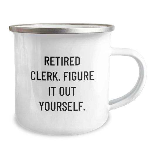 Funny Gift for a Retired Clerk, Camping Mug with Quirky 'Figure It Out Yourself' Quote, Clerk Christmas Unique Gifts from Family Friends