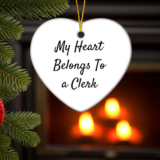 Funny Clerk Heart Ornament, 'My Heart Belongs To A Clerk' Quote, Gift for Clerk Friends, Christmas Unique Gifts from Friends
