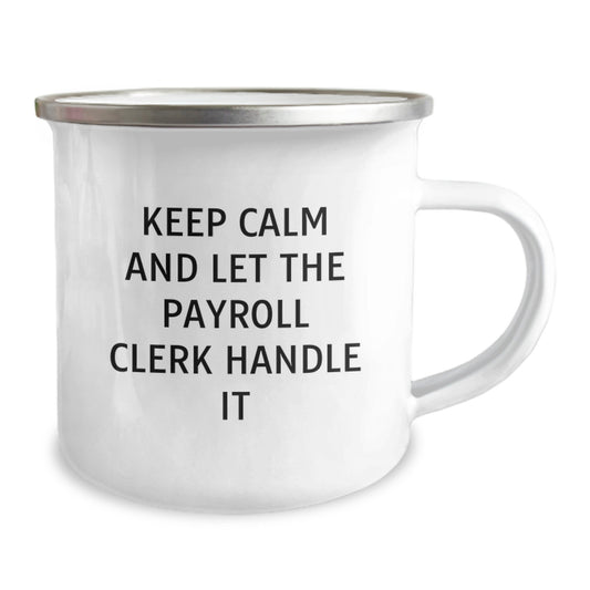 Funny Payroll Clerk Camping Mug Gifts for Men from Friends, Unique Christmas Unique Gifts for Payroll Clerk, Keep Calm And Let The Payroll Clerk Handle It Mugs