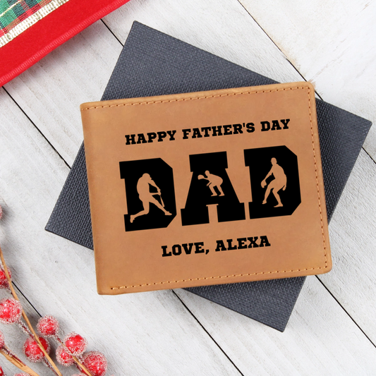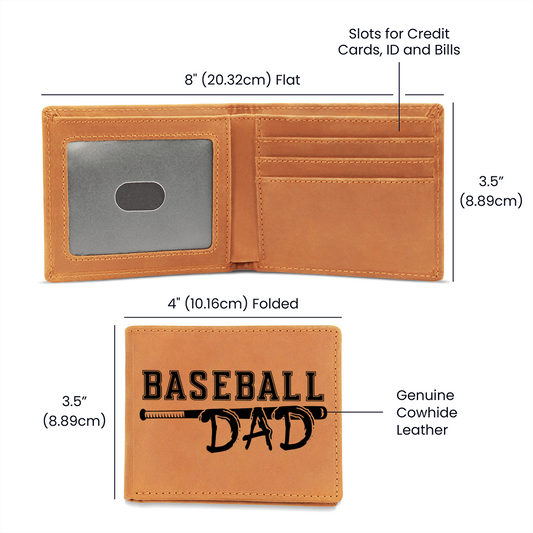 Baseball Dad Leather Wallet – Full Grain Cowhide Bifold – Gift for Sports-Loving Father, Coach, or Grandpa
