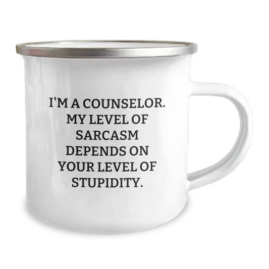 Gifts from Coworkers for Counselor - Funny Sarcasm Level Camping Mug for Men, Women, Friends - Christmas Unique Mug for Counselor Enthusiast, Counselor Lover, Counselor Fan