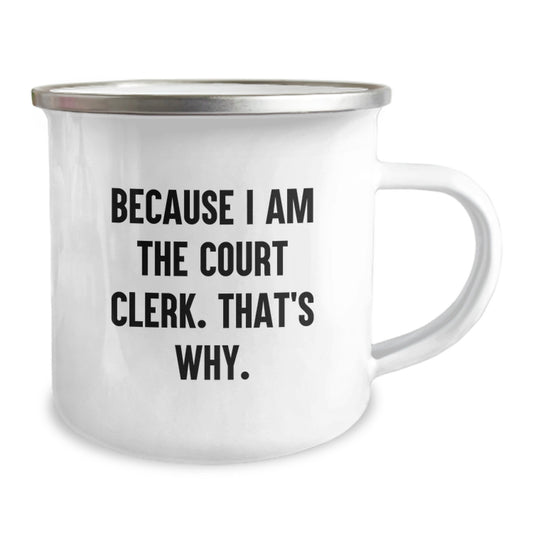 Funny Court Clerk Gifts for Men from Family - Because I Am The Court Clerk. That's Why. - Unique Graduation Camping Mug with Quote