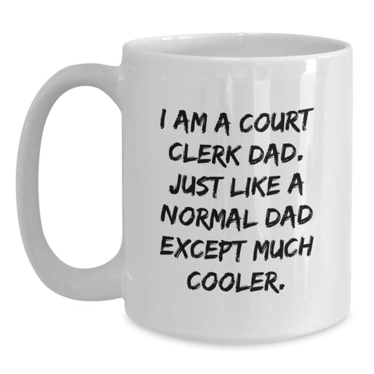 Funny Court Clerk Mug for Dad, Court Clerk Gifts for Men from Friends, Unique White Coffee Mug for Court Clerk Graduation