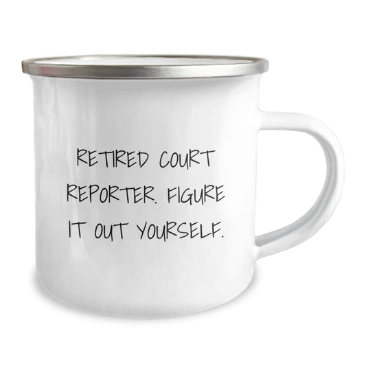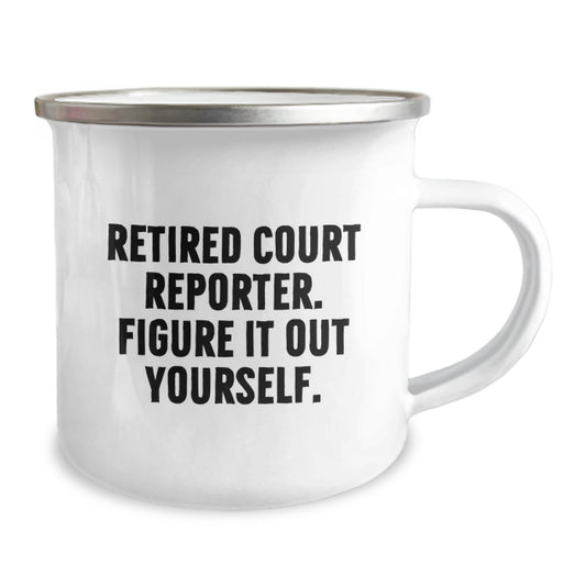 Funny Gifts for Court Reporter, Camping Mug, 'Retired Court Reporter. Figure It Out Yourself.' Quote, Unique Christmas Unique Gifts from Friends to Court Reporter