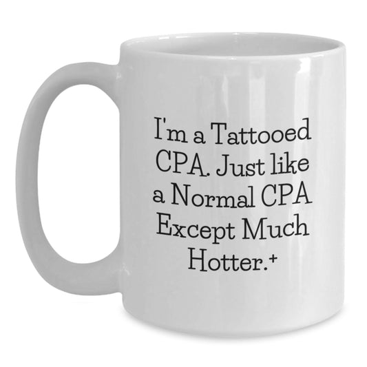 Funny CPA Gifts from Friends for Birthday, Unique White Coffee Mug - 'I'm A Tattooed Cpa. Just Like A Normal Cpa Except Much Hotter.', Perfect for Men, Women, Coworkers, and Family