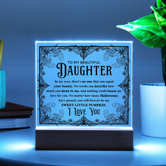 Daughter - Sweet Little Pumpkin Acrylic Square Plaque with Lighted LED Wooden Base