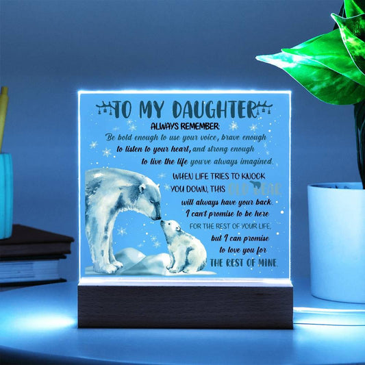 Daughter - This Old Bear Acrylic Square Plaque with LED Wooden Base